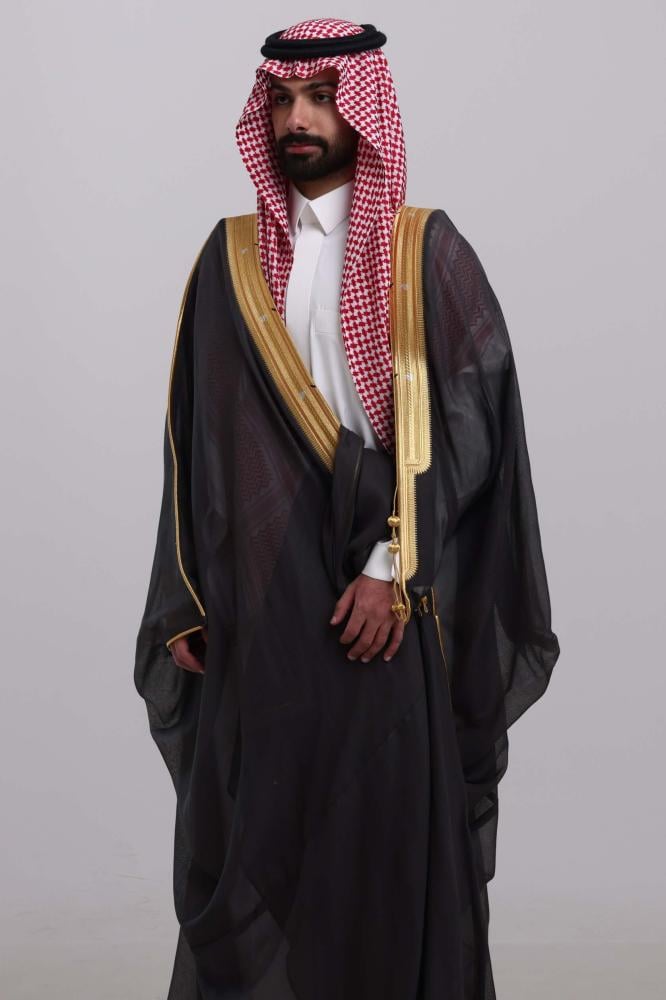 لا تتردد! امتلك الآن هذا البشت البترولي الملكي الفاخر وأضف لمسة من الأناقة الملكية إلى مناسباتك القادمة. ب